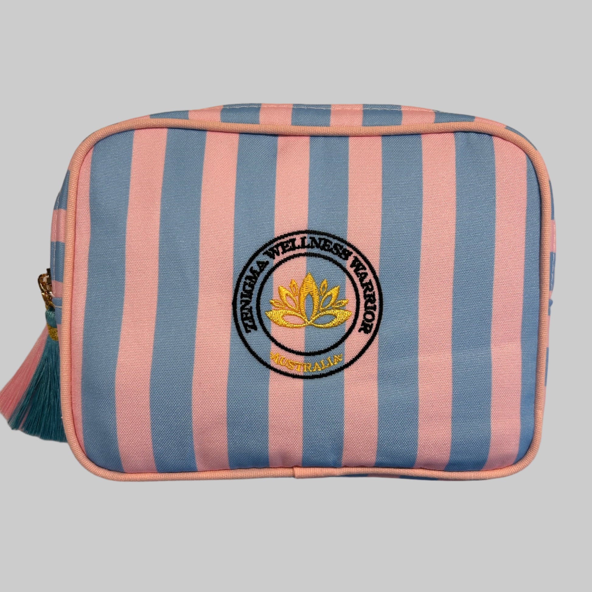 Zenigma Signature 'WELLNESS WARRIORS' blue and pink stripped bag with tassels
