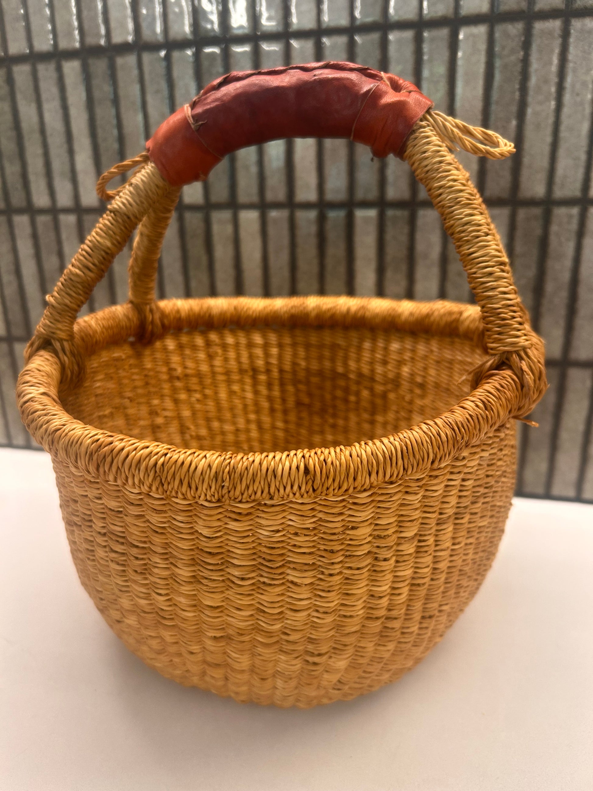 Elephant Grass Hamper Basket with Leather Handle (Mini Round):