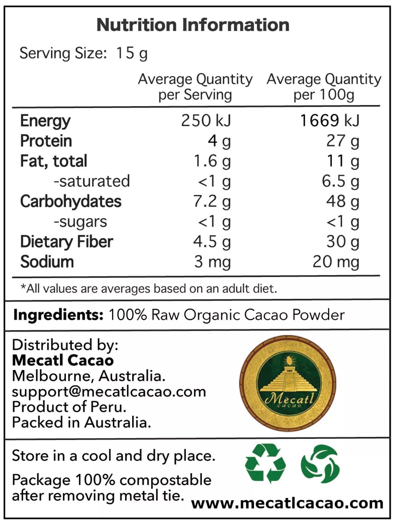 Cacao has been part of culture for over 4000 years; used in rituals, as a currency and ofcourse as the main ingredient of chocolate. Our 100% Certified Organic Cacao Powder has a rich chocolatey flavour and smooth texture. Cacao is a superfood; rich in protein, potent antioxidants (theobromine), minerals; copper, iron, phosphorus, magnesium and zinc amongst others.
