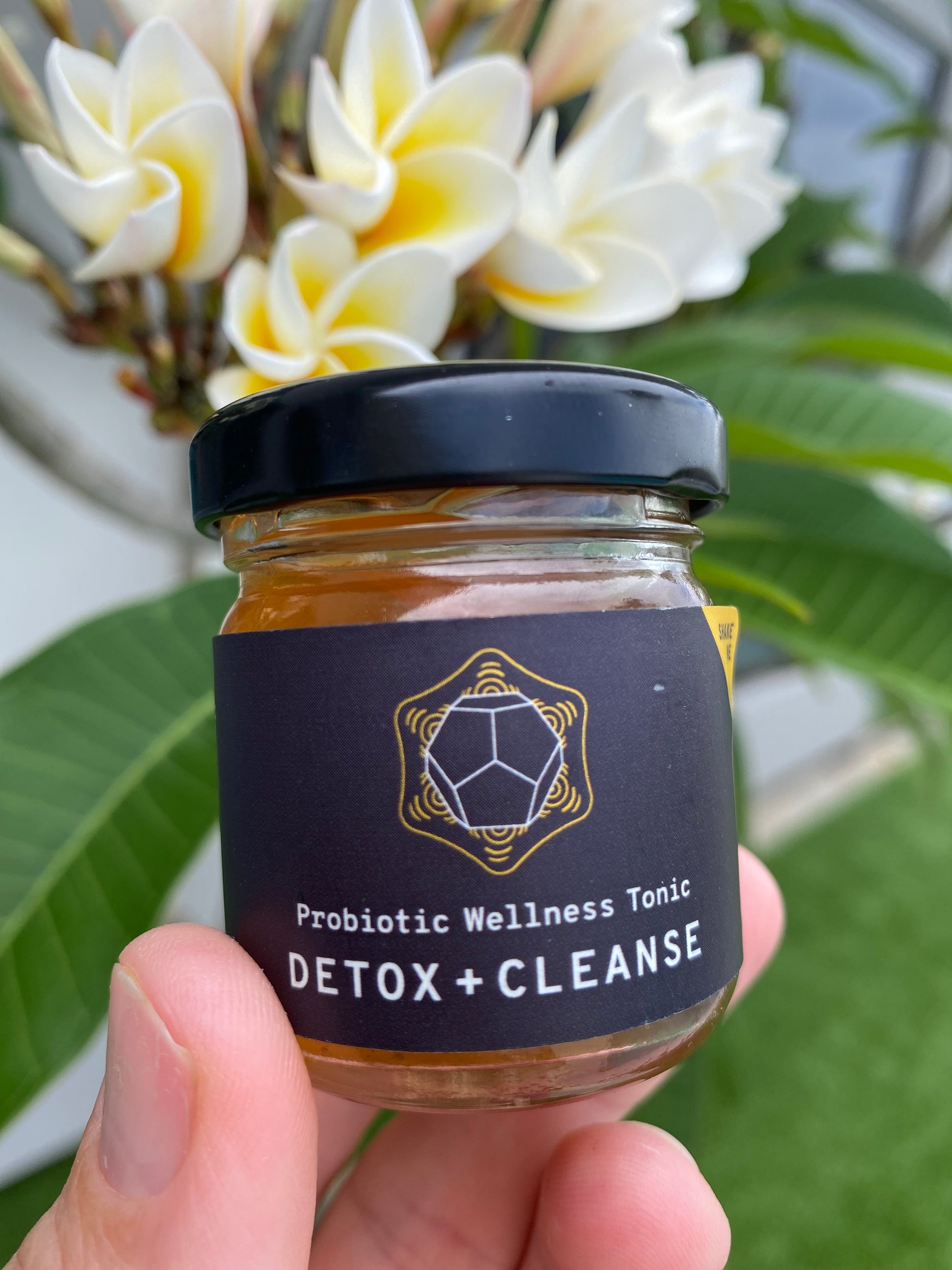 A premium grade, potent blend of symbiotic kombucha infused with adaptogens for gut health, microbiome and detoxification. @0mls in a glass of water, as a salad dressing or in a mocktail will do the trick to boost your gut health and gently cleanse your bod from the inside out.